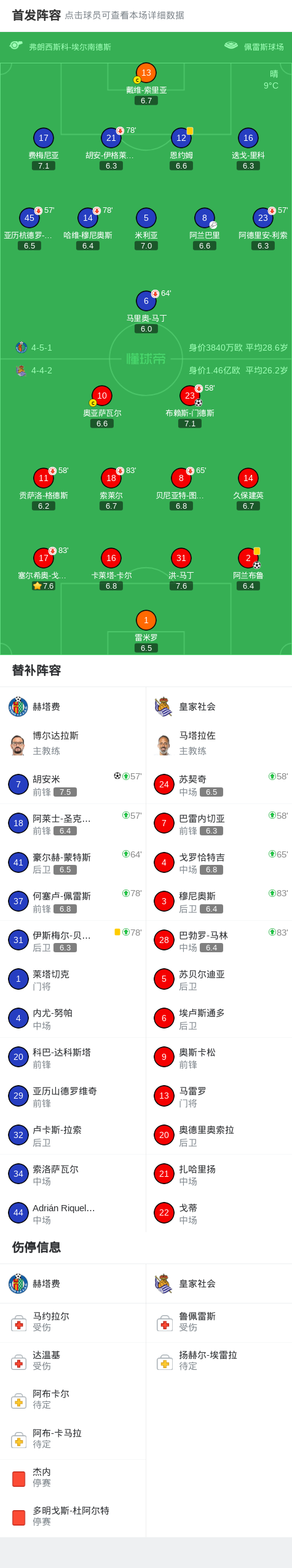 北京时间1月10日西班牙足球甲级联赛 联赛 第19轮,赫塔费主场对阵皇家社会。赫塔费胡安米破门。皇家社会布赖斯-门德斯破门,阿兰布鲁破门。最终比分赫塔费 1-2 皇家社会。